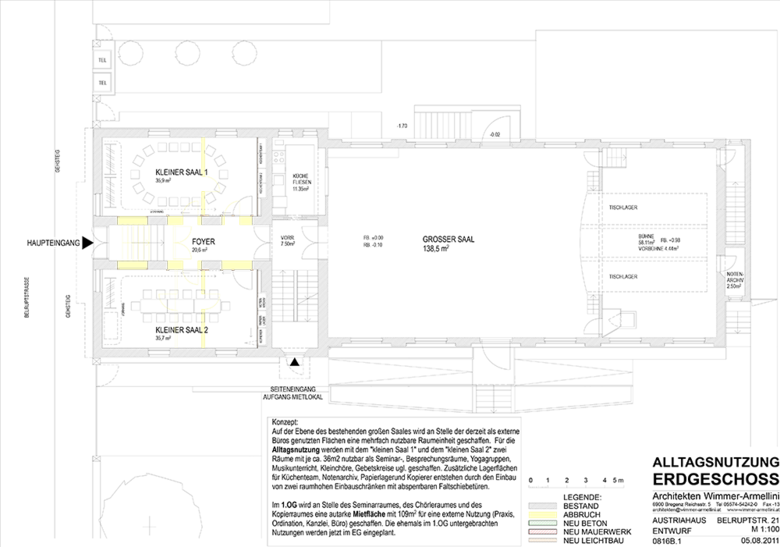 Für die Alltagsnutzung werden mit dem "kleinen Saal 1" und dem "kleinen Saal 2" zwei Räume mit je ca. 36m2 nutzbar als Seminar-, Besprechungsräume, Yogagruppen, Musikunterricht, Kleinchöre, Gebetskreise ugl. geschaffen.