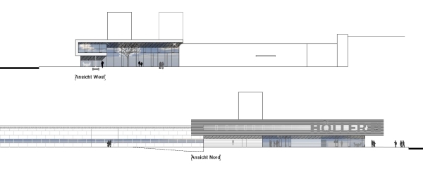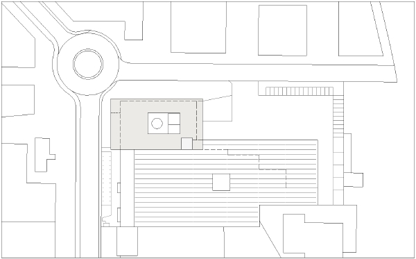 Der Entwurf reagiert in souveräner Weise auf die besondere Situation. Das Fehlen attraktiver Räume (innen und außen) ist in der Regel ein Kennzeichen peripherer Gewerbegebiete.