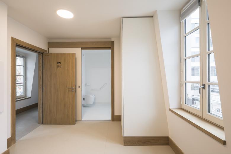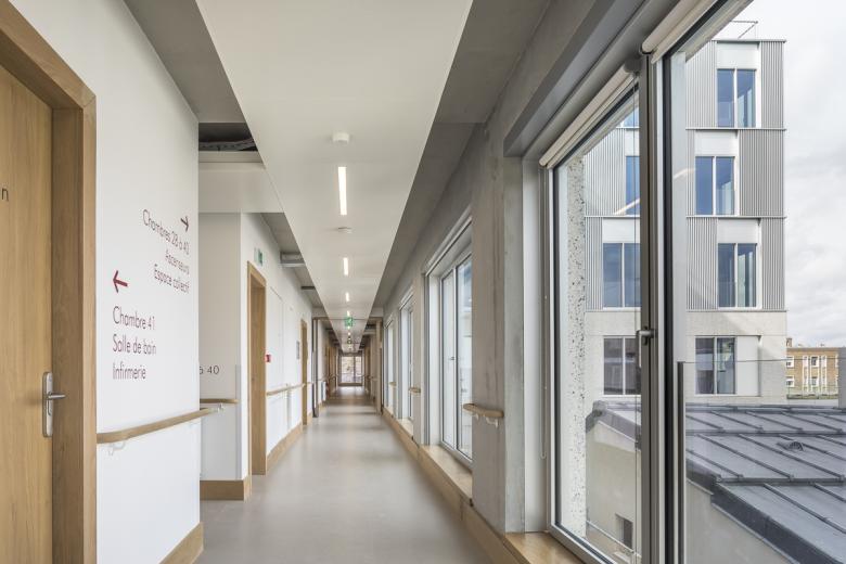 The project was carried out in several stages of demolition, asbestos removal, and reconstruction of the two main programmes, the Congregation, the nursing home (FAM) and the refectory of the Institute for Sensory Education (IDES).