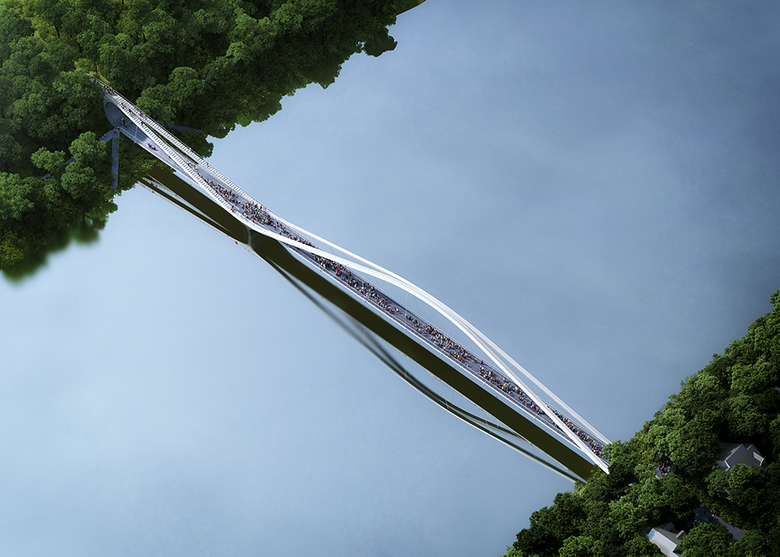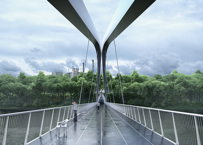 Our answer to this task corresponds to an aesthetically modern infrastructure: an undulating organic line as an echo to the river and hills of the Rhine landscape. The strength of our project is its respectful treatment of the Rhine, despite its distinctive appearance.