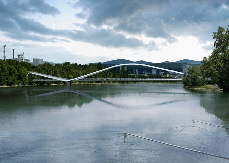 The project of this new bridge is located between the two cities of Rheinfelden, Germany and Switzerland. On a very specific point of the Rhine, a new pedestrian and cycle bridge should be built.