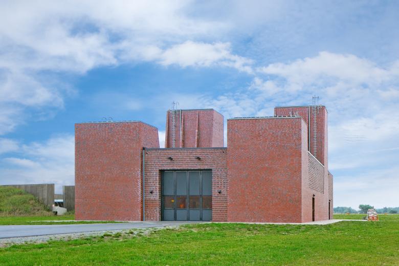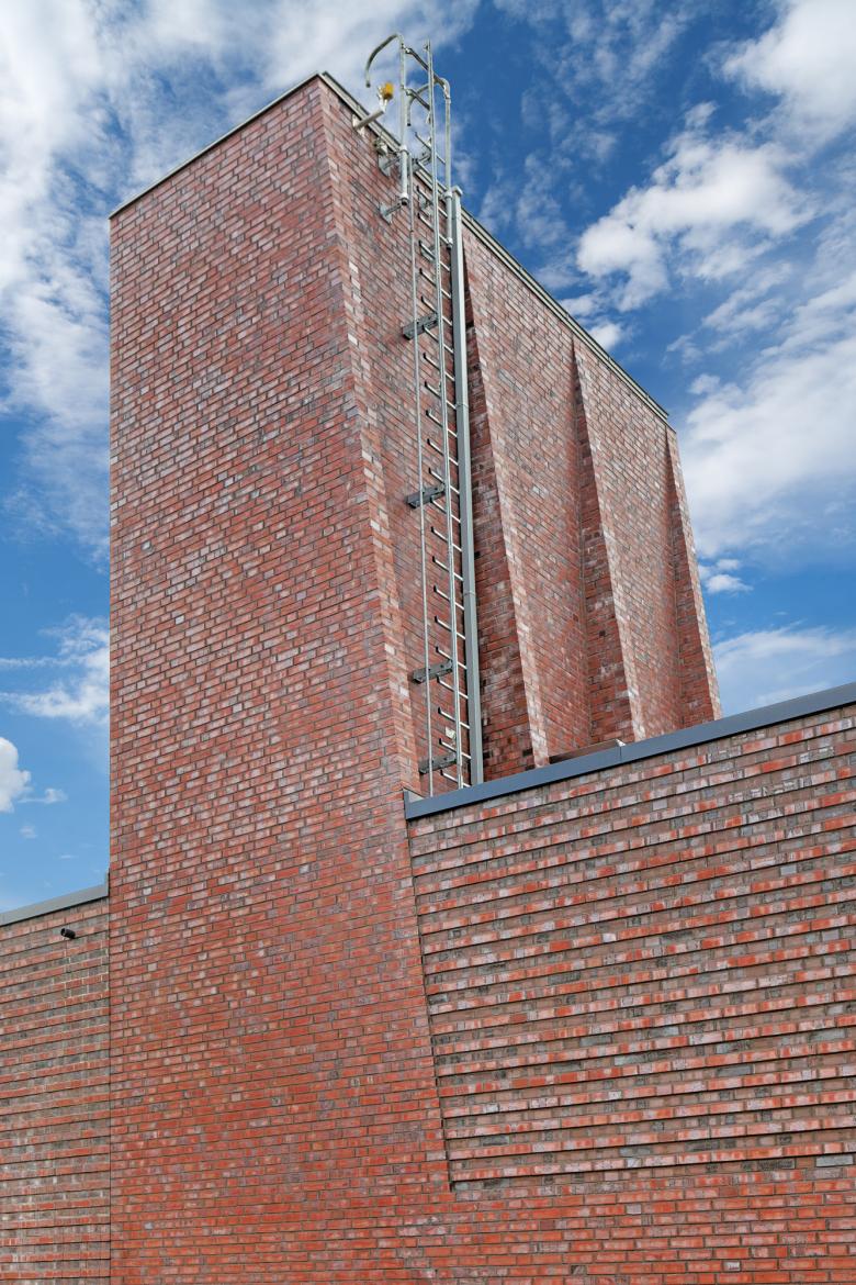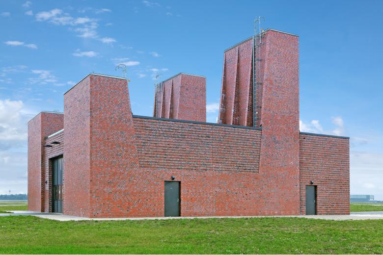 Augenfällig bei diesem Gebäude sind die vier 'Turmbauten', die durch die An- und Absaugung bedingt sind. Trotz der profanen Funktion konnte dem Gebäude ein eigener architektonischer Ausdruck verliehen werden.