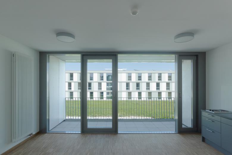 In der transparenten Erschließungszone ist je Geschoss eine Teeküche mit Aufenthaltsraum und Loggia als gemeinschaftliche Kommunikationszone angegliedert. Die Dächer der Gebäude sind als extensiv begrünte Flachdächer ausgeführt. Die Kollektorfläche der solarthermischen Anlage auf dem Dach deckt ca. ein Drittel des gesamten Energieverbrauchs des Gebäudes ab.