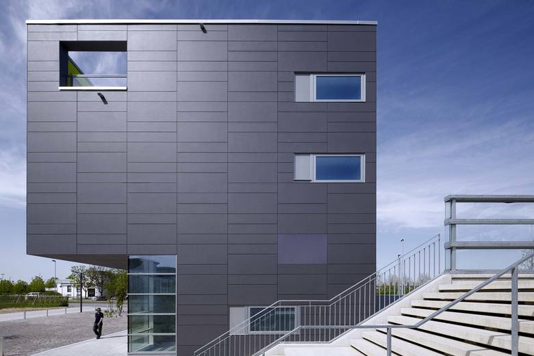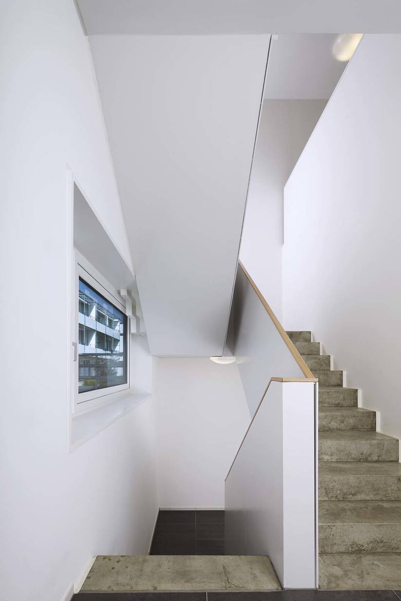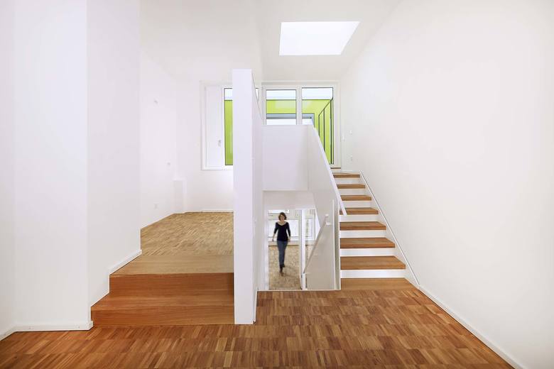 Das Gebäude wurde in Ingolstadt Ende 2012 mit vier Split-Level Wohnungen, Dachterrasse und einer Gewerbeeinheit fertiggestellt. Es markiert am nordwestlichen Rand von Ingolstadt den Eingang zu dem Siedlungsfeld „Permoserstraße“, in dem in den letzten zwei Jahrzehnten eine Vielzahl an experimentellen, kostengünstigen Wohnungsbauten errichtet wurden. 2001 wurde dort ein Gebaeude von BLAUWERK im Nachwuchswettbewerb EUROPAN 6 prämiert und realisiert. Der Bauherr bat die Architekten im Anschluss, den Quartiersrand an der stark befahrenen Richard-Wagner-Straße mit drei weiteren Bauwerken zu definieren. Das nun fertig gestellte Gebäude bietet als Eckpunkt des Ensembles im Erdgeschoss eine Gewerbenutzung oder eine Gastronomie an. Mit seiner Auskragung nach Sueden erzeugt es hierfür einen geschützten Platzbereich. Der einfache Baukörper weist im Inneren eine komplexe Struktur auf. Die Split-Level-Wohnungen sind uueber der teils zweigeschossigen Gewerbeeinheit angeordnet. Die privateren Räume liegen in den unteren Ebenen, Wohnraum, Küche und private Freifläche sind in den oberen Ebenen angeordnet. Der Wohnbereich ist eineinhalb Geschosse hoch und orientiert sich nach Norden mit Blick auf die freie Landschaft. Über die Dachterrasse fällt Südlicht tief ins Gebäudeinnere. Barrierefreie Wohnungen werden in den angrenzenden Gebaeuden angeboten. Besonderer Wert wurde auf die Belichtung der internen Wohnungstreppen mit Oberlichtern und teilverglasten Türelementen gelegt. Um möglichst wenig Platz zu verbrauchen wurden die Seitenwangen der Treppe als tragende Geländer aus Stahlplatten hergestellt. Die Fassade besteht aus kostengünstigen, vorgehängten Zementfaserplatten. In diese sind Lichtfelder eingelassen, die nachts zusammen mit den Fenstern ein wechselndes Bild des Gebäudes an dieser markanten Stelle ergeben.