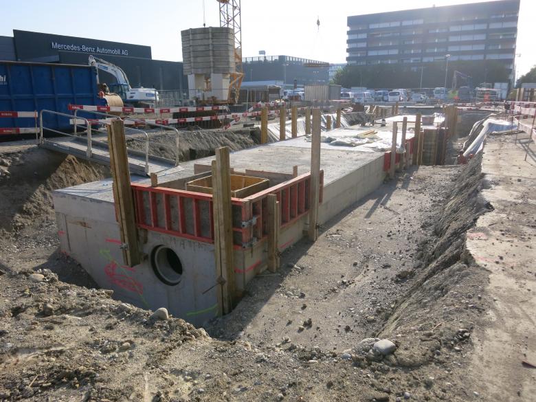 Für die Beleuchtung der Umgebung und Marketingmassnahmen werden rund 20 grosse Elektroschächte erstell. Diese sind die Kreuzungspunkte für rund 5‘000 m Leerrohre.