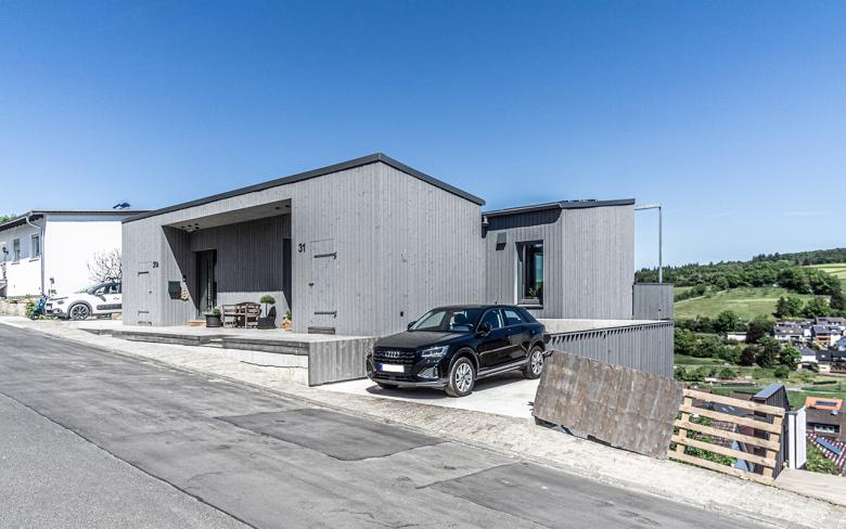Holzständerbauweise mit Wärmepumpe, dezentraler Lüftungsanlage mit WRG und PV-auf dem Dach.