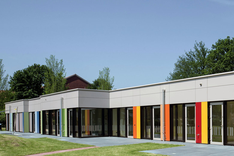 Die Gruppenräume mit den Nebenräumen sind nach Süden zur Freifläche gewandt.