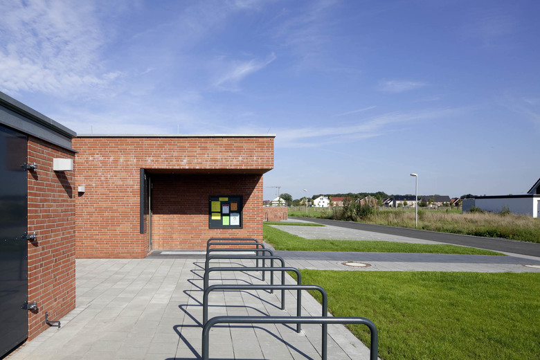 Die kombinierte Kinder- und Jugendeinrichtung wurde in einem neuen Wohngebiet als L-förmiger, eingeschossiger Baukörper an der Straße Holtrode errichtet. Parallel zur Straße befindet sich in dem kürzeren Schenkel die Jugendeinrichtung in dem längeren Schenkel die dreigruppige Kindertagesstätte. Der Außenbereich wird durch den Kindergartenbaukörper in zwei Bereiche geteilt, um jeder Nutzung eine eigene Außenspielfläche zu geben.