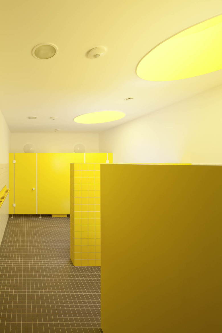 Beide Nutzungen haben räumlich getrennte Eingangsbereiche mit eigenen Vorplätzen, die über auskragende Vordächer markiert werden. Im Inneren sind beide Nutzungsbereiche verbunden, so dass Synergieeffekte genutzt werden können.