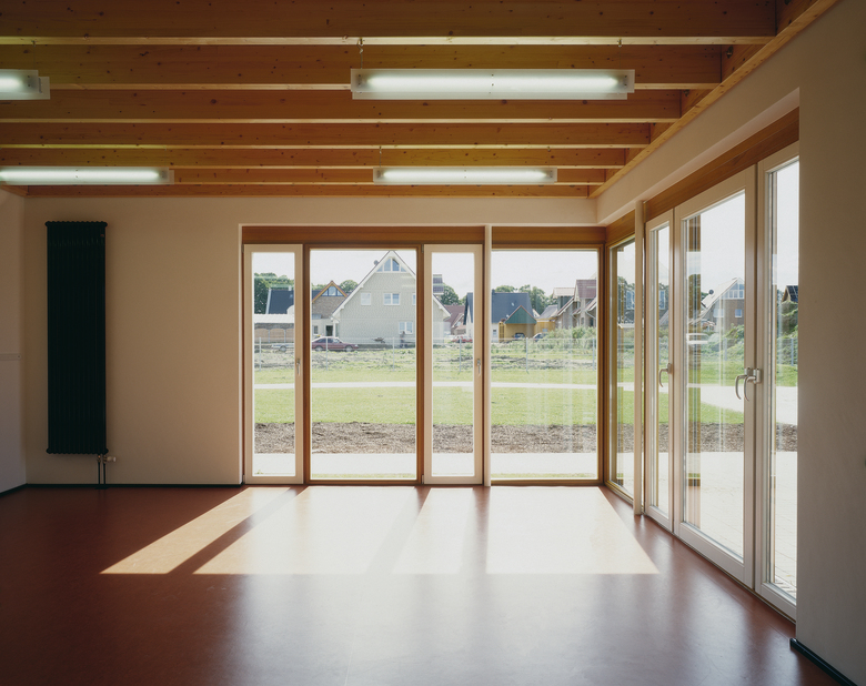 Der Kindergarten ist als Drei- Gruppen-Kindergarten konzipiert mit der Option, den Kindergarten zu einem späteren Zeitpunkt um einen vierten Gruppenraum zu erweitern.