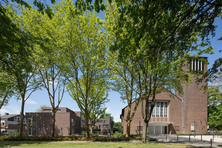 Das Projekt ging aus einem gewonnenen Architekten-Wettbewerb hervor. Aufgabe war es südwestlich der Kirche St. Theresia eine qualitätsvolle Wohnbebauung in Form von Eigentumswohnungen zu errichten. Das städtebauliche Konzept sieht zwei maßstäbliche Einzelbaukörper vor, die rechtwinklig zueinander angeordnet werden. Der erste Baukörper steht parallel und in gebührendem Abstand zur Kirche und hält den Blick auf die Längsseite der Kirche frei. Der zweite Baukörper begrenzt in der Tiefe des Grundstücks den neu entstandenen Außenraum. Der große Baum südwestlich der Kirche bleibt erhalten und wird zum Mittelpunkt des neuen Außenraums. Durch die wechselseitige Stellung der Gebäude entstehen jeweils Ansichten auf kurze Kopfseiten und längere Gebäudefronten, so wird die Maßstäblichkeit der umgebenen Bebauung fortgeführt.