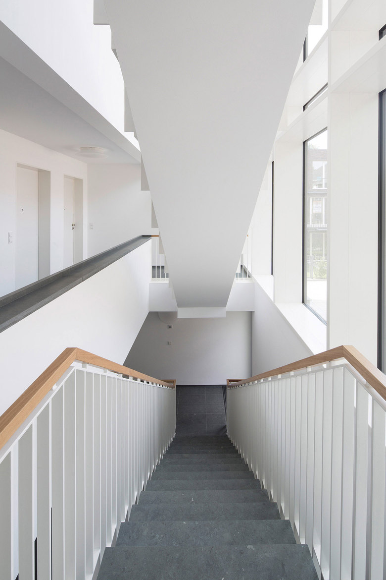 Die beiden Baukörper haben gleiche Abmessungen und sind als 2-geschossige Gebäude mit zurückgesetztem Staffelgeschoss konzipiert. Auf jeder Etage befinden sich zwei bis drei Wohnungen unterschiedlicher Größe, die um ein großzügiges, repräsentatives und lichtdurchflutetes Treppenhaus angeordnet sind. Die Verschiedenheit der Wohnungsgrößen pro Etage genügt unterschiedlichsten Bedürfnissen und ermöglicht innovative Wohnformen. Alle Wohnungen sind barrierefrei und verfügen über Terrassen und Balkone nach Süden. Die Gebäude haben eine Unterkellerung für die notwendigen Abstellräume. Eine Gemeinschaftstiefgarage befindet sich unter der Wohnanlage.