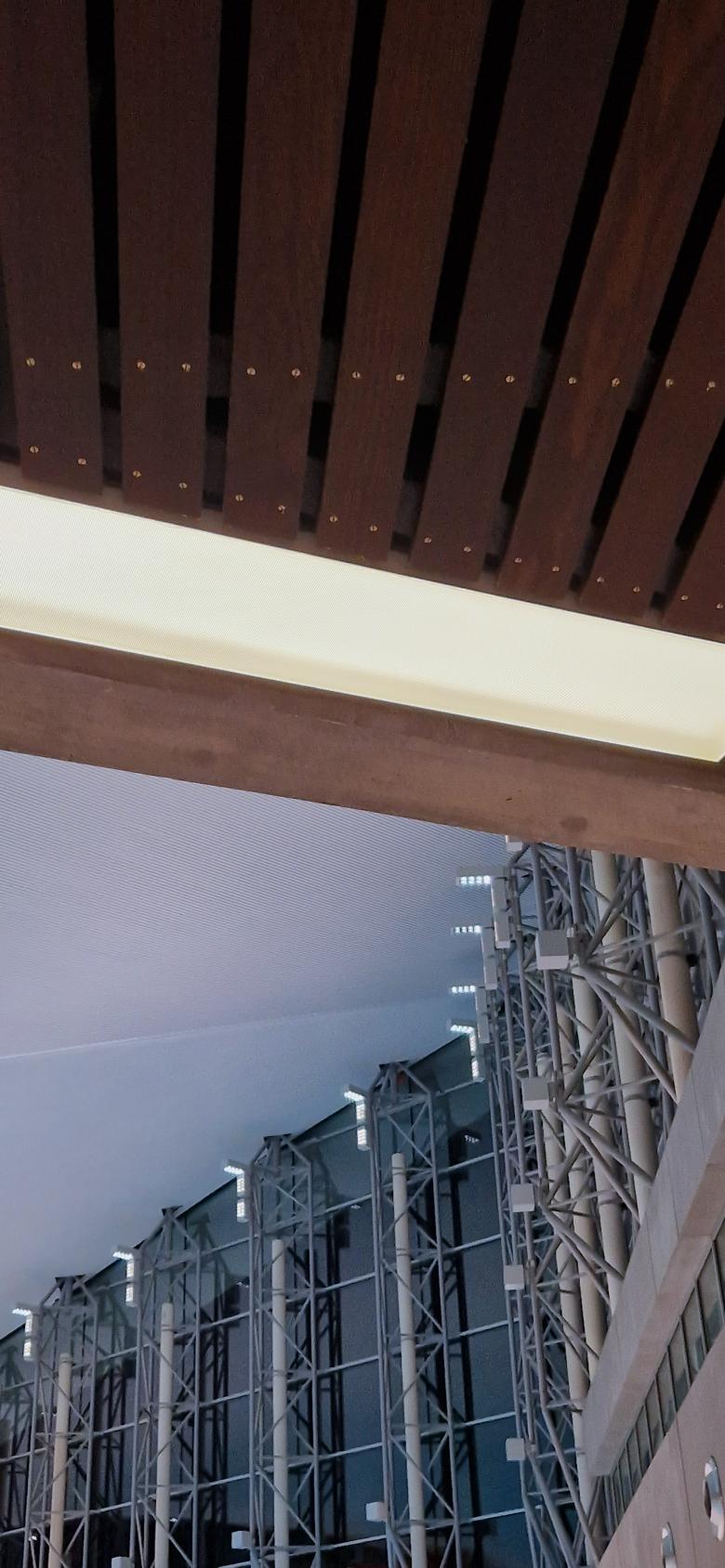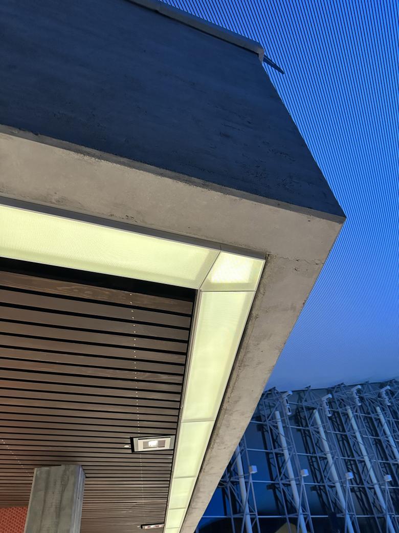 Das Gestaltungsziel war die Freiformdecke frei von Leuchten zu halten und die Fassadenkonstruktion nicht anzustrahlen, sodass der Raum auch von außen klar ablesbar wird, ohne dass visuell wirksame Überstrahlungen und Blendung entstehen. Das direkte Licht aus den Beleuchtungssystemen verlässt die Schwimmhallen nicht.