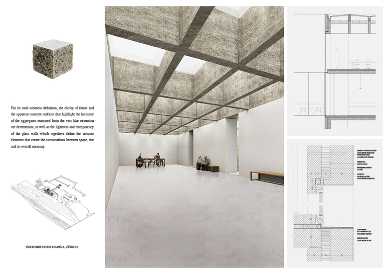 The spatial sequence that organizes the KIBAG Foundation rises of an interpretation of the site - a space with a specific character and identity distinctly created to establish mediation between the city and the building. As a formation centre for the KIBAG group workers and as a conference and exhibition nucleus opened to the city, the proposed programme expressively distinguishes itself through its dimension and nature. The conformation of this hierarchy of spaces leans on two indissociable factors above all: a specific tool - the section - and its hegemony as an element of design that conducts and generates ideas of powerful spaces (rich architectonic devices that are capable of organizing different programmatic components); and a specific material - the concrete in situ - for its structural and constructive dimension in characterizing these strong spatialities. For its total coherent definition, the clarity of forms and the apparent concrete surfaces that highlight the harmony of the aggregates extracted from the vast lake extension are determinant, as well as the lightness and transparency of the glass walls which together define the tectonic elements that create the associations between space, site and its overall meaning.
