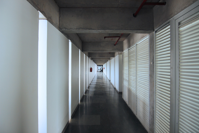 The project is for a large student residence along with supplementary program, adjacent to the main IIIT-B campus. The program is maximized on the new site with a high rise hybrid typology chosen in order to preserve open space in the existing campus.