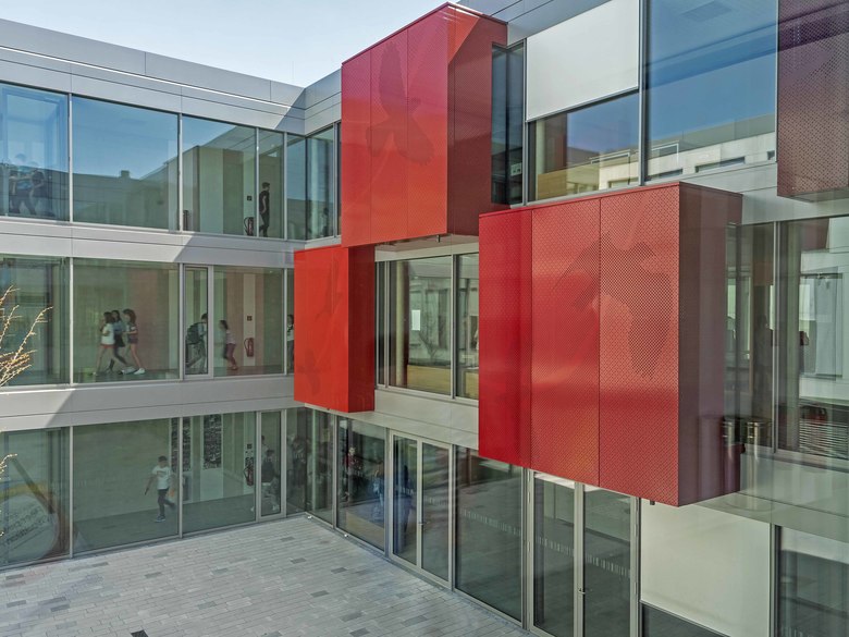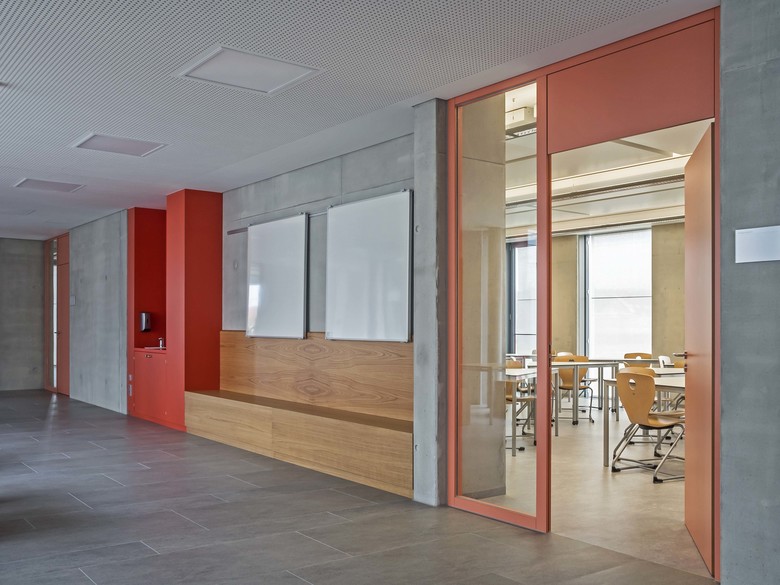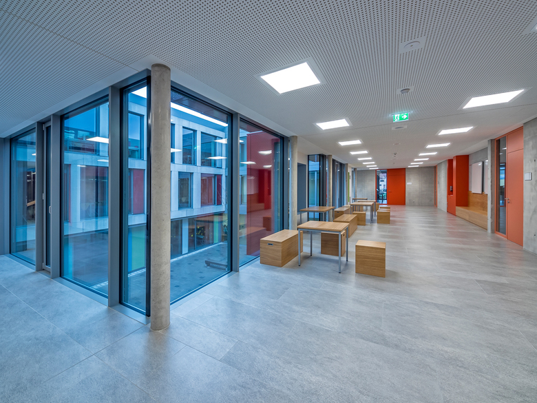 Die Erweiterung des Gymnasium Wendelstein schliesst in der gesamten Gebäudebreite und Höhe an den Hauptbau an, und setzt die konstruktiven und gestalterischen Ansätze des Hauptbaus direkt fort. Die Erweiterung ist rund 25m lang, der Gesamtschulbaukörper 130m. Der Erweiterungsbau enthält 8 neue Klassenräume, ein Musiksaal, ein Zeichensaal, zwei naturwissenschaftliche Fachräume, eine kleine Aula, die für Musik- und Theater- aufführungen genutzt werden kann, ein zusätzlicher Innenhof, der nicht nur der Belichtung dient, sondern für Unterricht im Freien genutzt werden kann und offene Mehrzweckbereiche in den Verkehrsflächen, vor den Klassenräumen, die Spielräume für zeitgemäßen Unterricht ermöglichen.