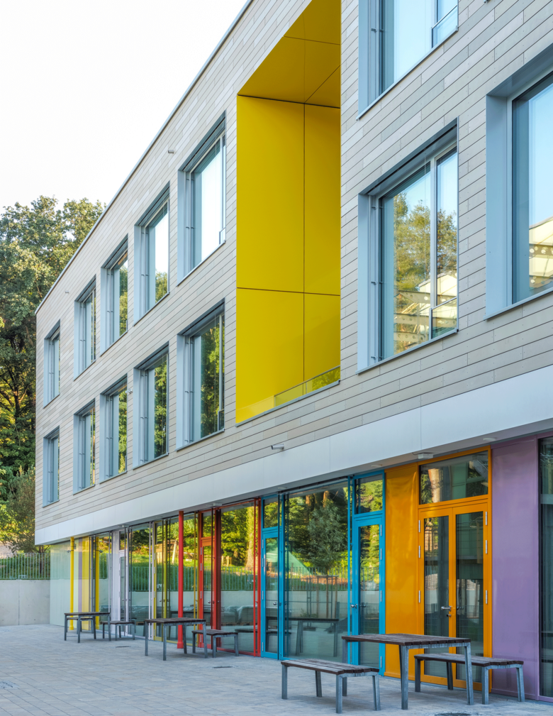 Die Erneuerung des Gymnasium Hilpoltstein fällt in eine Zeit, in der sich auch ein tiefgreifender pädagogischer Wandel vollzieht– weg von geschlossenen, hin zu offenen Raumstrukturen. Das Gebäude trägt diesem Wandel Rechnung: Die Klassenräume sind als Lernhäuser angeordnet. Jedes Lernhaus hat eine innere Gemeinschaftszone mit direktem Bezug ins Freie. Dadurch können nun alle Flächen, auch Verkehrsflächen zur Flexibilisierung und Rhythmisierung des Unterrichtes herangezogen werden. Die gesamte Fläche wird bespielt. Unterricht kann überall stattfinden. Aktuell befindet sich die Schule im Bau.... In Arbeitsgemeinschaft mit Balda Architekten, Fürstenfeldbruck.