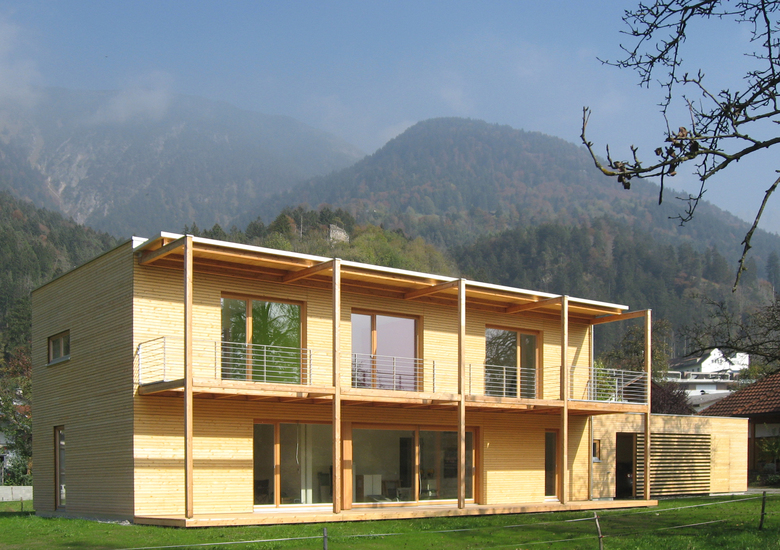 Konstruktion: Holzrahmenbau mit Installationsebene unter Verwendung natürlicher Materialien.
