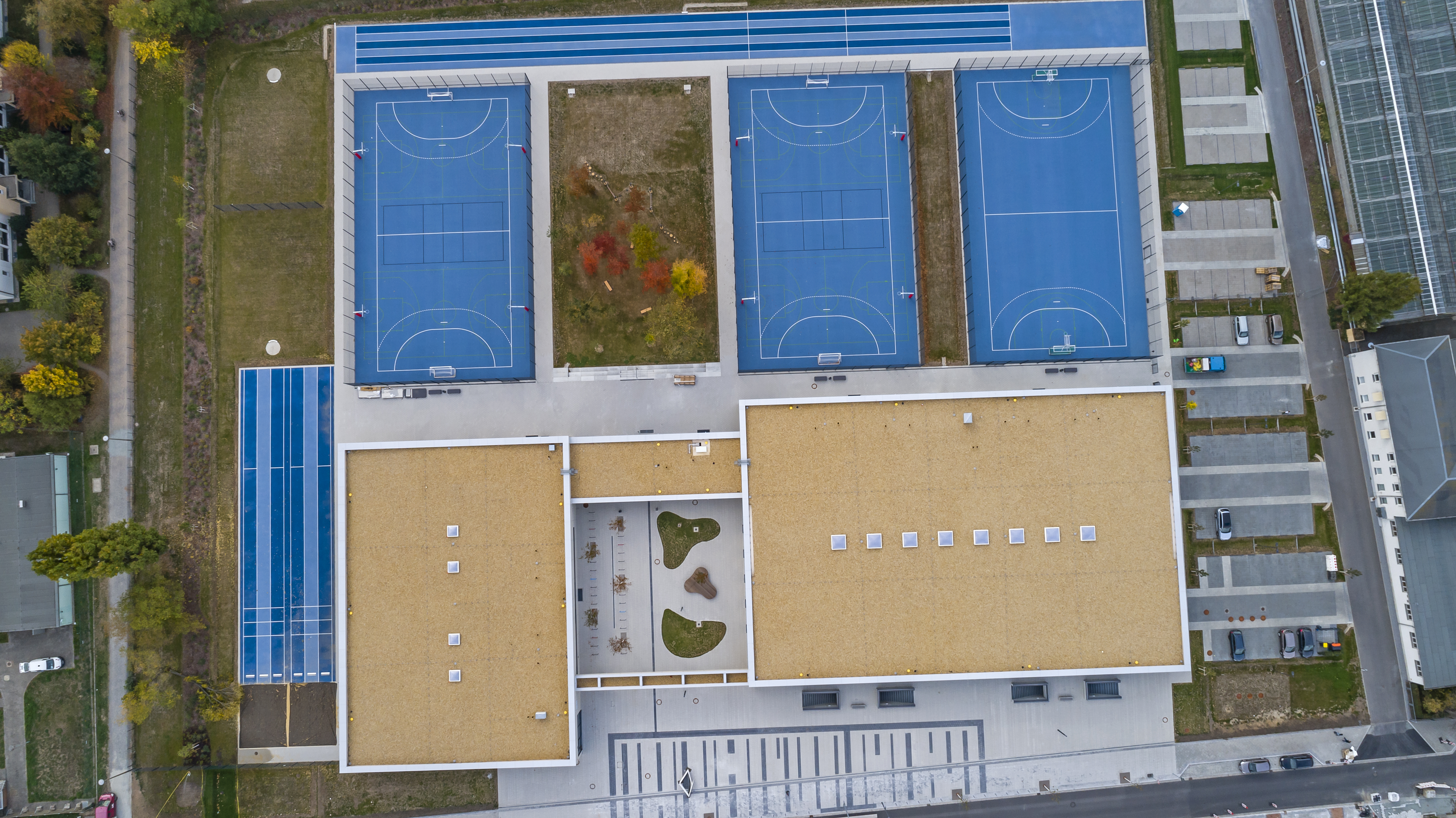- Ein Gebäude für Sportler, das in die Erde geht