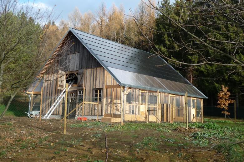 Der Hof ist als Permakultur-Landwirtschaft für Obst- & Gemüseanbau mit Kleintierhaltung entwickelt worden; der HÜHNERSTALL ermöglicht dabei die Selbstversorgung der Pflanzen mit biologischem Dünger aus dem Mist von ca. 200 Hühnern. Darüber hinaus versorgt die Photovoltaikanlage auf der Südfläche des Steildaches das angeschlossene Hauptgebäude mit Solarstrom. Dass aber auch alles innerhalb eines Sozialprojekts, das ausschließlich über Spenden finanziert wird, so umgesetzt werden konnte, ist nur dem Mitwirken und der Unterstützung vieler zu verdanken:
