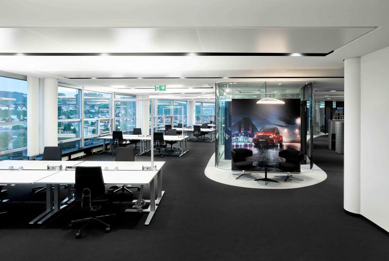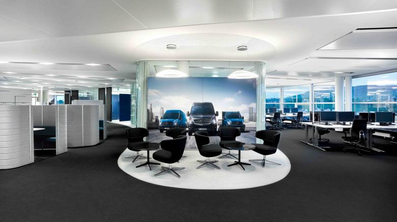 Im Zuge von Sanierungsmaßnahmen des Van-Technology-Centers stellten sich die Daimler AG und Gellink + Schwämmlein Architekten der Herausforderung aus einem bestehenden Bürogeschoss mit Zellenbüros eine offene, stillvoll modernisierte Bürowelt zu schaffen.