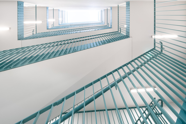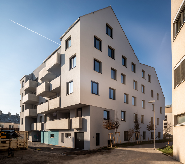 Der Baukörper bietet Raum für 42 Wohnungen mit vielfältigen, teilweise flexiblen Grundrissen, jede Wohnung mit eigenem Freiraum.