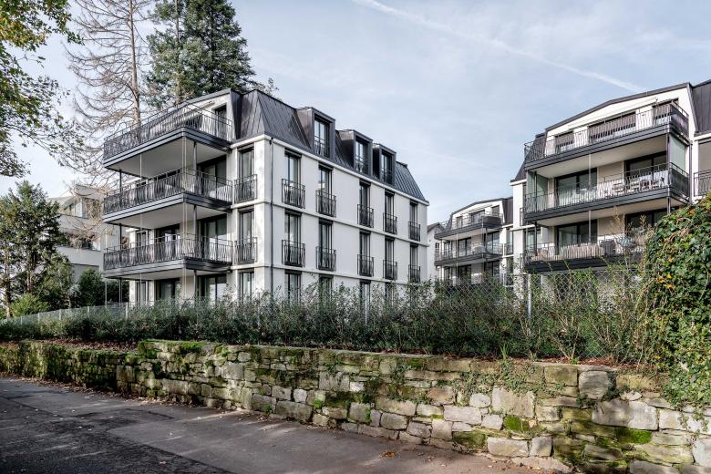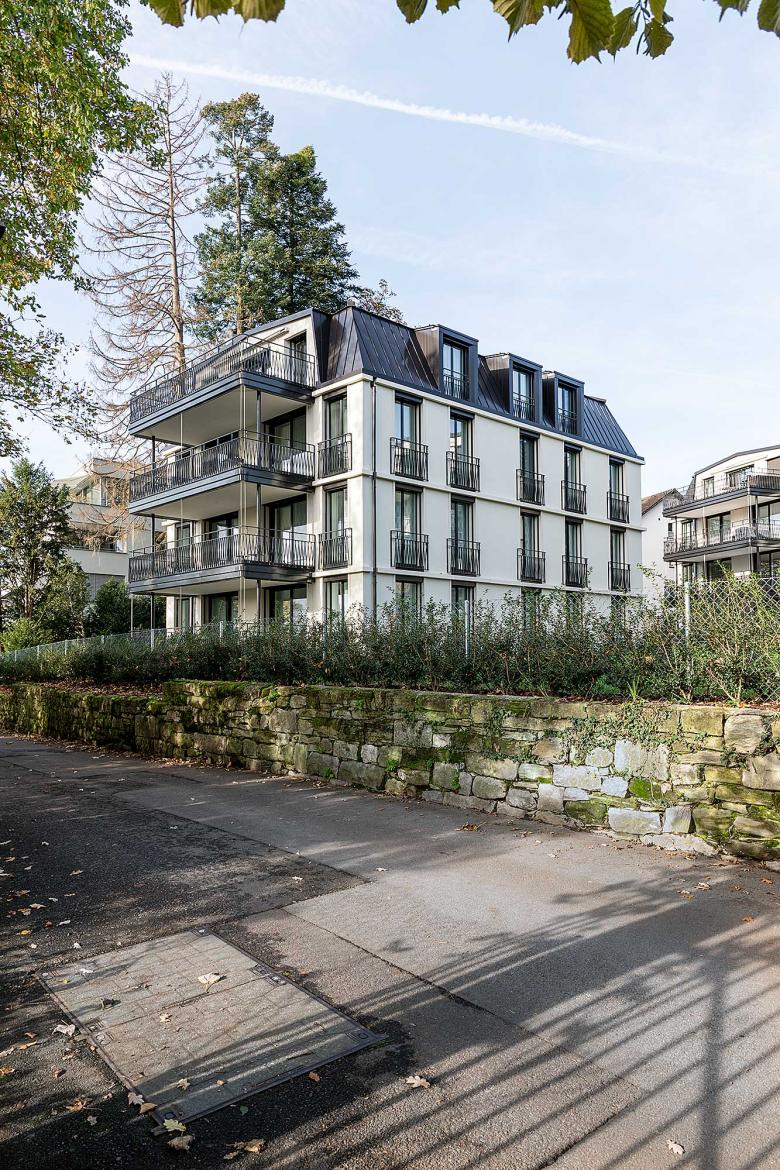 An bevorzugter Lage im beliebten Stadtquartier Dreilinden nehmen die drei neuen Stadtvillen einen ganz speziellen Platz ein. Ihre schlichte und elegante äussere Erscheinung leitet sich von Gestaltungsmerkmalen klassischer Villenbauten ab, interpretiert diese aber auch zeitgenössisch und modern. Auf eine gute Integration der neuen Baukörper ins wertvolle Quartierbild wurde grossen Wert gelegt. So weisen die Häuser beispielsweise erhöhte Sockelgeschosse mit Hochparterre sowie villentypische Mansardendächer auf. Jedes einzelne Geschoss jedes Hauses bietet eine einzigartige, exklusive Wohnsituation mit unterschiedlichen Sichtbezügen in die Stadt, zum See oder zum Konservatorium. Zwischen den drei Stadtvillen sorgt ein üppig angelegter Schaugarten mit Magnolienbäumen für eine stimmungsvolle Atmosphäre.