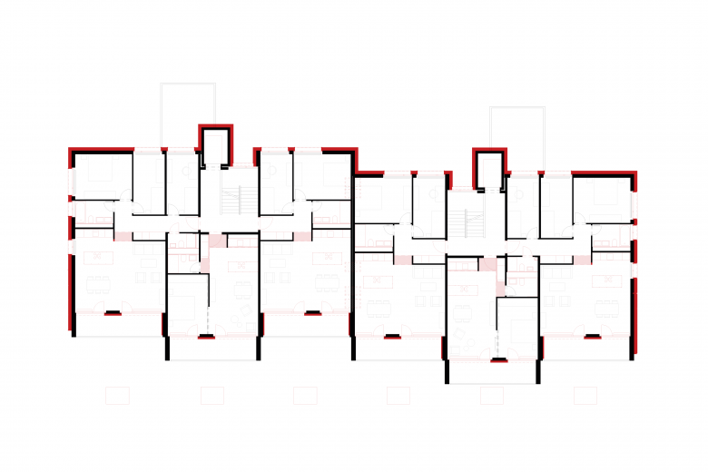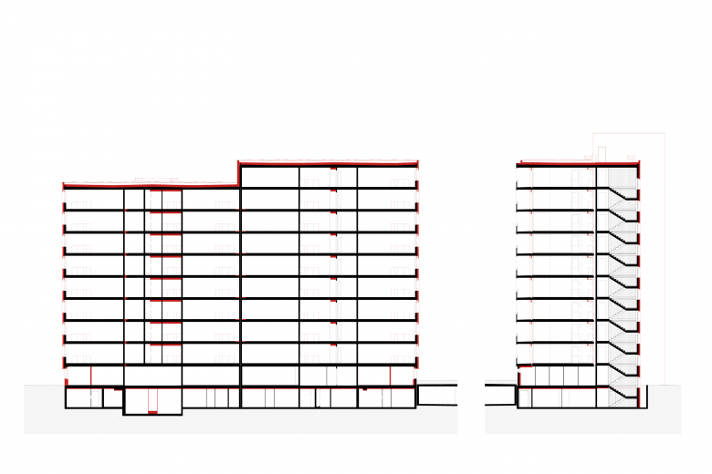 Im Sinne der sozialen Nachhaltigkeit werden Begegnungszonen wie Treppenhäuser, Waschküchen und Eingangsbereiche gestärkt, um den Austausch unter den Bewohner:innen zu fördern. Ein inklusiver Umbau stellt sicher, dass die Gebäude für alle Menschen gleichermassen nutzbar sind. Nach dem Prinzip der Suffizienz – «so viel wie nötig, so wenig wie möglich» – werden die Massnahmen ressourcenschonend umgesetzt. Aufgrund der guten Grundrissqualität und der soliden Bausubstanz ist eine weitere Lebensdauer von 40 bis 50 Jahren aus ökologischer und ökonomischer Sicht sinnvoll und angestrebt.