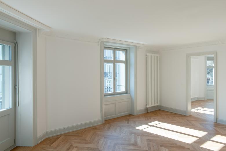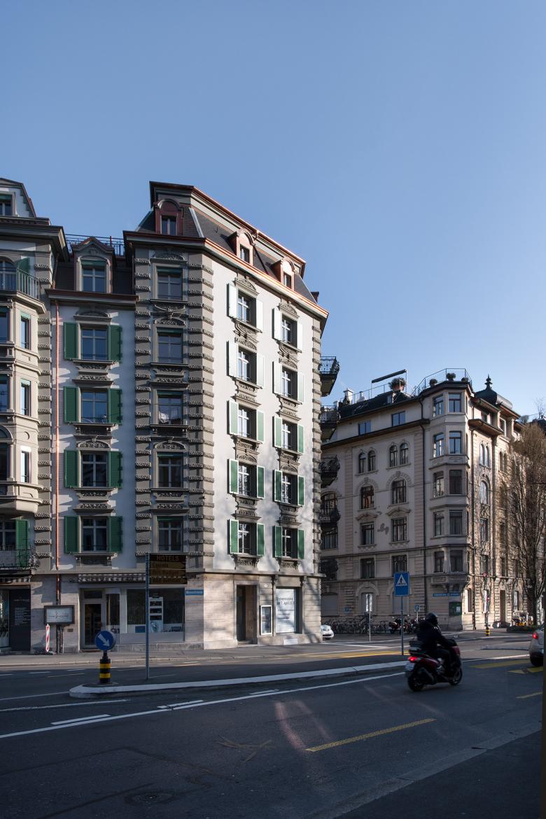 Das Haus an der Moosstrasse 19 wurde 1907 als Teil eines Mietshofgevierts von F.E. Japke und Felder & Cie. erbaut und liegt an prominenter Lage im Neustadtquartier. Alle wesentlichen Fassadenelemente sind in ihrem Ursprung erhalten. Allerdings war der Ausdruck des Gebäudes im Verlauf der Jahre durch verschiedene Sanierungen und Farbveränderungen verunklärt worden. Mit dem Umbau nutzten wir die Chance, das Ursprüngliche, das Einzigartige und den Charme dieses Gebäudes wieder ans Tageslicht zu bringen und den Originalzustand so weit als möglich wiederherzustellen. Im Inneren standen die sanfte Sanierung des Bestands, die Integration des neuen Aufzuges und der Einbau von zwei zusätzlichen Wohnung unter dem Dach im Fokus.