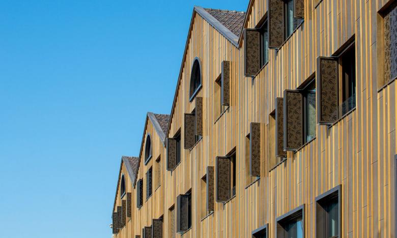 Auch von aussen sind Faltscherenläden ein Blickfang. Sie überzeugen ästhetisch mit modernem Design und können dank vielfältigen Gestaltungsmöglichkeiten an jeder Gebäudehülle unverwechselbare optische Akzente setzen oder sich perfekt ins Fassadenbild integrieren. Bei der Auswahl der Farben erfüllt Griesser jeden Wunsch. Als Füllungen der Paneele sind ausser den Standardmaterialien Aluminium und Holz auch Streckmetall, Gewebe und Fassadenplatten erhältlich.