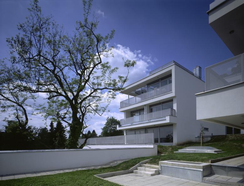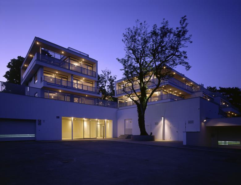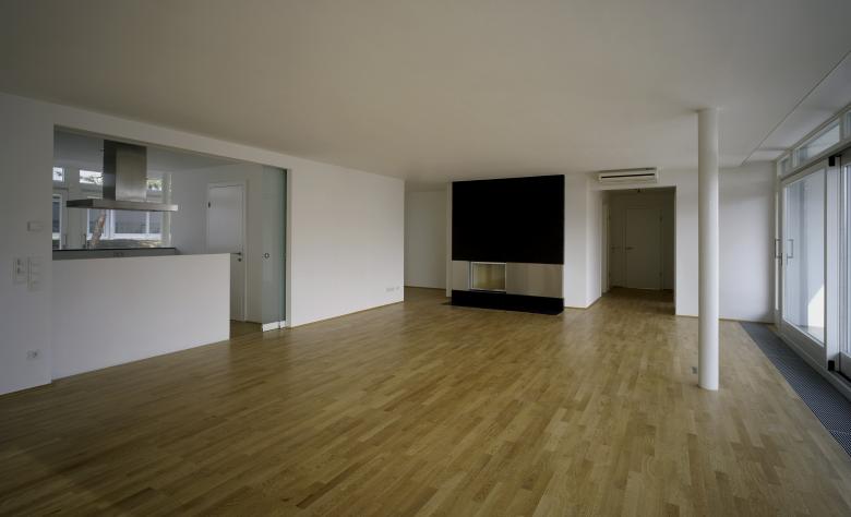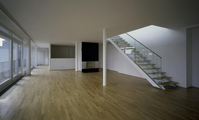 Die Aufgabe war schwierig, immerhin galt es mit begrenztem Aufwand 22 getrennt vermiet- und verwaltbare Luxuswohnungen zwischen 150 und 250 m² in und um einen Bestandskern zu planen, ohne dessen Umrisse wesentlich zu verändern. So konnte man nur in der Höhenentwicklung ansetzen und mit der Aufstockung den geforderten Raum gewinnen - Petri deklariert das aber klar mittels Gesimskanten im Außenputz, welche die alte Trauflinie markieren. Die abwechslungsreich und jeweils unverwechselbar geschnittenen Wohnungen wurden als Maisonetten, in einer Ebene und als Split Level Typen angelegt. Dominierendes Prinzip war dabei eine Art Loftcharakter, der nicht nur dem originalen Baugedanken, sondern auch der aktuellen Vorstellung von fließenden Räumen entspricht. Halboffene ``Raum in Raum`` - Einheiten, offene Kamine, großzügige Verglasungen und Öffnungen auf Terrassen oder private Gärtenflächen sind die Merkmale dieses entspannten Wohnens auf hohem Niveau.