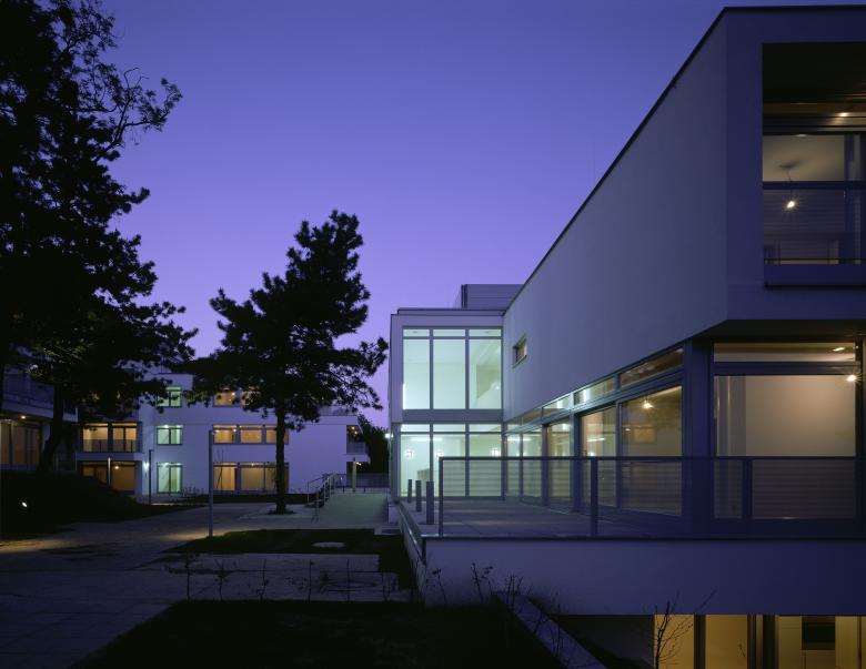 Sichtbetonkuben mit corbusianischen Bandfenstern und relativ