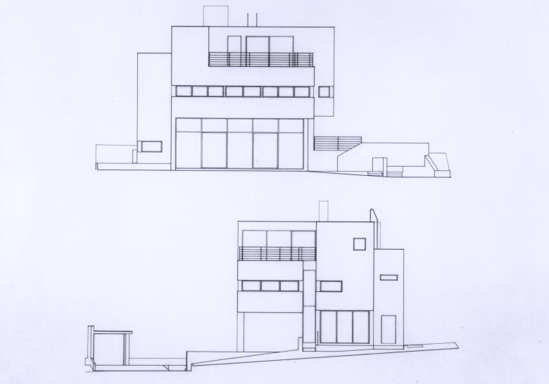 Das Projekt erhält damit durch die abgestufte Bauweise einen zurückhaltenden, schlichten Charakter, der durch Fensterproportionen und Wandstruktur fortgesetzt wird.