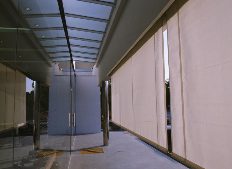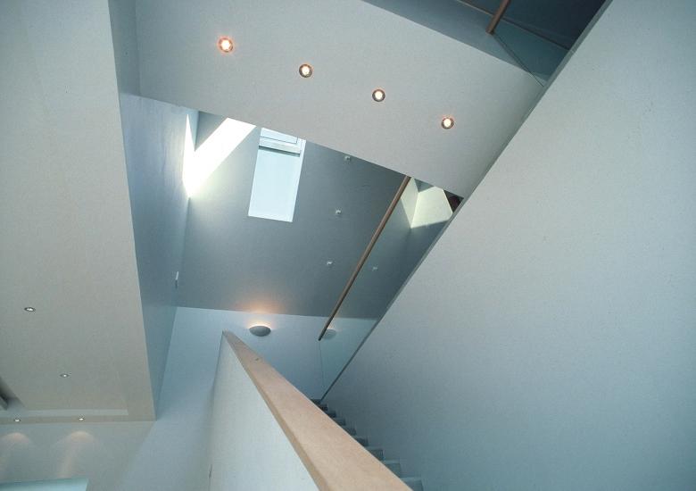 Das Profil der in dieser Gegend typischen Straßenhäuser bleibt erhalten, jedoch in seiner äußeren Erscheinung in einer abstrakten reduzierten Form.