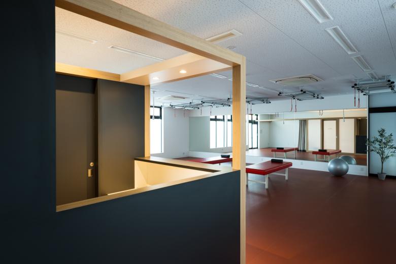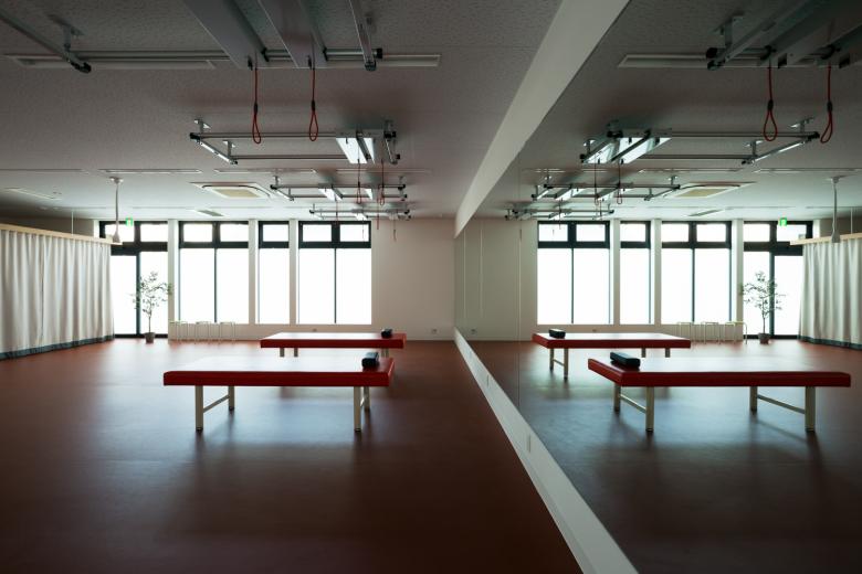 Existing facilities have become too small due to the wide range of needs, from recovering local residents' physical functions to improving the performance of top athletes. For this reason, the new facility was designed to specialize in treatment using the ceiling-suspended sling exercise "Red Cord."