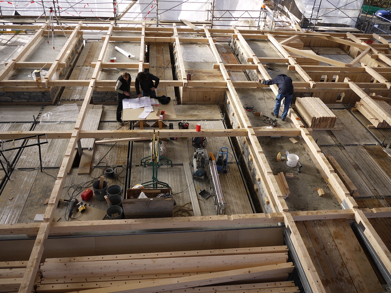 Mit den altbewährten Methoden Trockensteinmauerwerk und verdübelten Balken