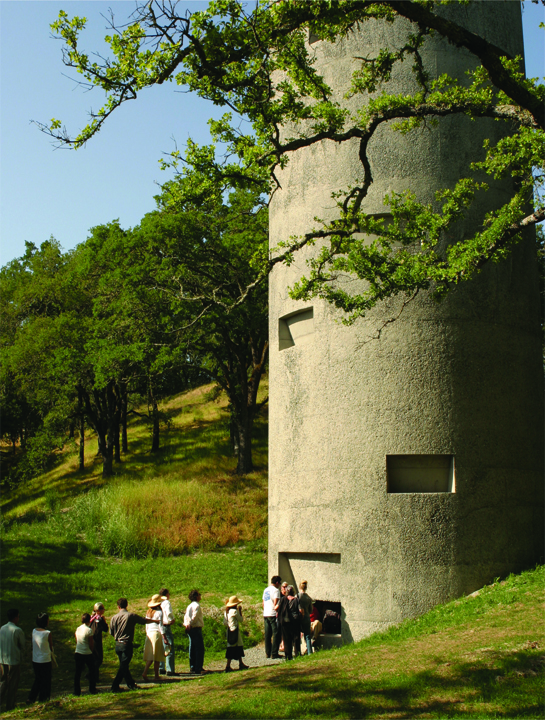 The tower is a site-specific artwork located at the Oliver Ranch in Alexander Valley. Designed by the artist Ann Hamilton, with our office as architect of record, the tower was imagined as a space for performance. Double helix stairs allow for performers on one stair and audience on the other, letting the two intertwine but never come into direct contact as the stairs wind up the tower. The 24’ diameter tower is several stories tall with seating and light niches cut into the thick concrete walls. Open at the top, the sky is reflected in a pool at the base of the tower.