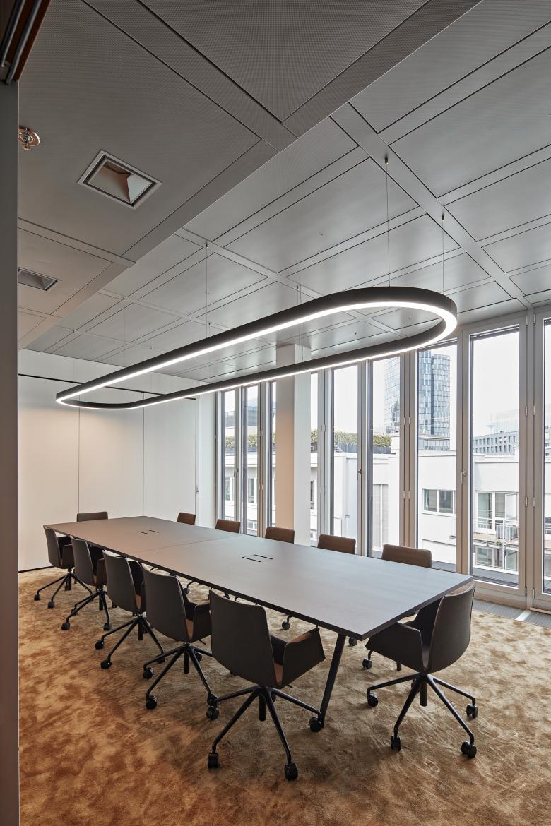 Meetingräume mit den Namen Zandvoort, Ameland, Scheveningen und Farben und Materialien, die an Dünen erinnern. Statt Strandkörben finden sich hier jedoch flexible Arbeitslandschaften. Wir wurden von einer führenden Vermögensverwaltung beauftragt, ein Ausbaukonzept zu entwickeln, dass das fortschrittliche niederländische Büro- und Arbeitsmodell in einem klassischen Bürostandort integriert, ohne dabei als Fremdkörper zu wirken. Unser Hauptziel bestand darin, das räumliche Potenzial des Hauptgebäudes zu nutzen und die Mittelzonen optimal zu gestalten.