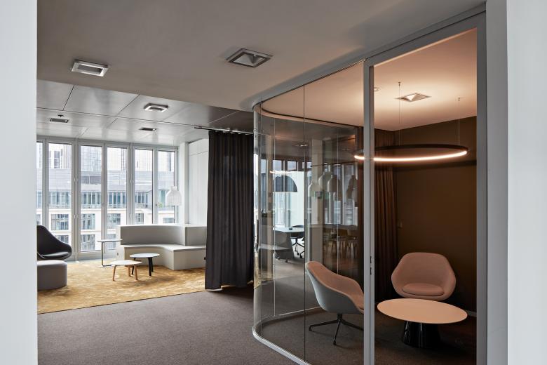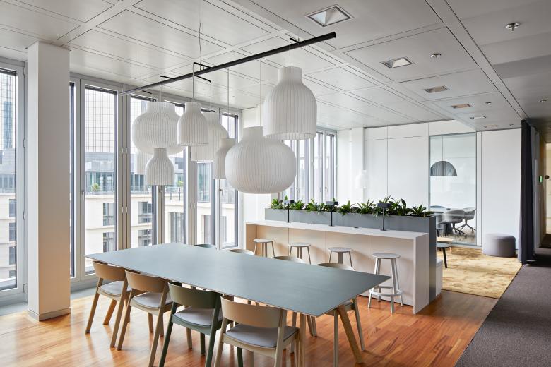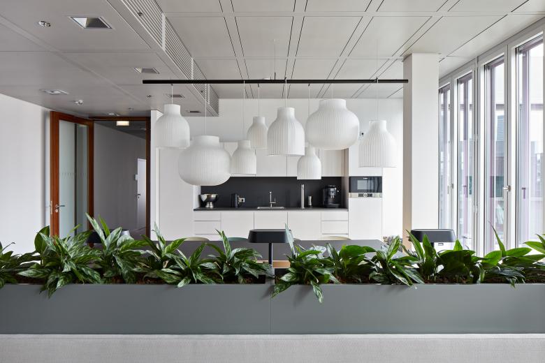 Das neue Büro wurde vor allem in seiner Struktur progressiv gestaltet. Entstanden ist ein agiles und offenes Arbeitsplatzkonzept, das eine ausgewogene Mischung aus Großraum und Think Tanks, Kommunikationszonen und Besprechungsräumen bietet. Statt eines klassischen Empfangsbereichs erwartet Besucher nun eine geräumige und offene Teeküche mit einer Arbeitslounge, die sowohl Kunden als auch Mitarbeitern als Treffpunkt dient.