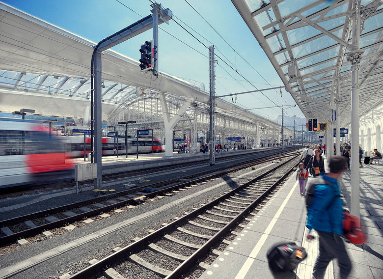 BRIEF: Optimierung der Gleiszugänge und Überdachung der neuen Bahnsteige des bestehenden Hauptbahnhofes.