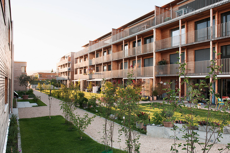 Die unterschiedlichen Wohnungen profitieren von der Südhanglage sowie vom Grundkonzept der Solararchitektur: grosszügige Fensterfronten gegen Süden mit Balkonen und Terrassen, kleine Öffnungen gegen Norden sowie eine überdurchschnittliche Wärmedämmung des kompakten Volumens. Diese Faktoren sind für den geringen Energieverbrauch der Siedlung ausschlaggebend. Solarenergie und Erdwärme werden kombiniert. Die dachintegrierte Photovoltaikanlage produziert in der energetischen Jahresbilanz über den Strom für die Gebäudetechnik hinaus noch etwa Dreiviertel des Haushaltstromes.