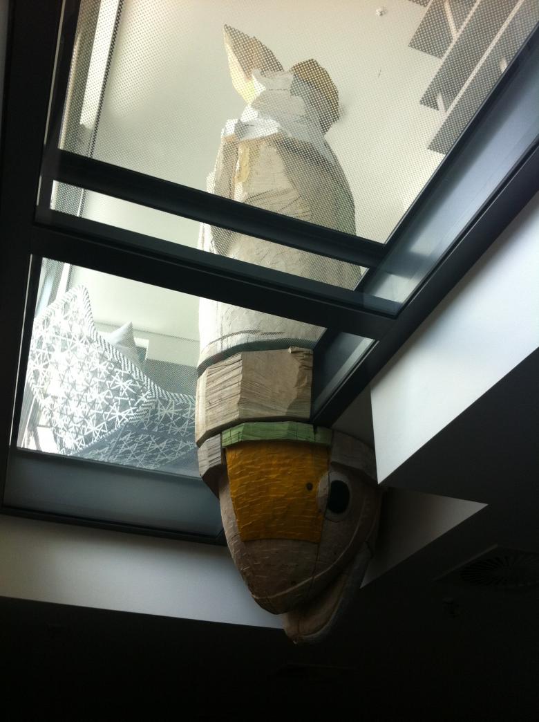 Die städtebauliche Position des Platzes und seiner Bauwerke im Fluss der Jahrzehnte: Die Wände mutieren von Beton in Birkenwäldchen und der Betonboden wird bereits mit Farbfäden durch zogen. Die „gesprühten“ Zimmernummern stellen Berlin von seiner lebendigen Seite dar. Die berlinerischen Sprüche stehen für sich.