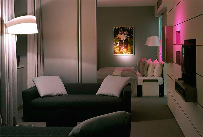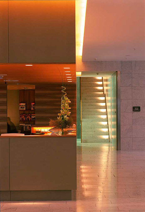 Die Addition »nüchterner« Werkstoffe wie Beton und Stein, facettenreicher Grautöne, klarer Raumkuben und scharf gerichteter Lichter ergibt in ihrer Summe einen vorzüglichen und genussvoll lebbaren »opulenten Purismus«. Das ist unsere Reaktion auf die vorgefundene, streng »bürokratische Bausubstanz« in einer modern denkenden Handelsstadt.