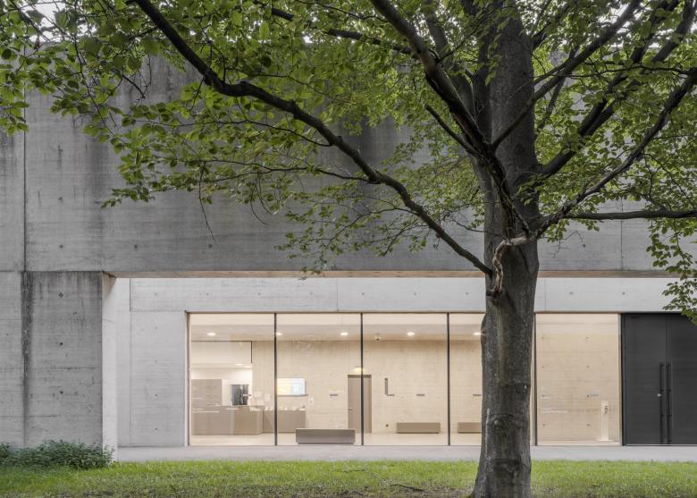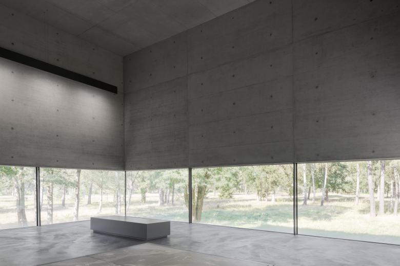Mit seinen fast 200 Metern Länge ist das Dokumentationszentrum der Gedenkstätte Bergen-Belsen ein ungewöhnliches Bauwerk. Wie eine Skulptur aus Beton liegt es mitten im Heidewald am Rande des ehemaligen Konzentrationslagers. Wenige Meter ragt das Gebäude auf das frühere Lagergelände, aus Respekt vor dem Ort allerdings, ohne den Boden zu berühren. Direkt daneben mündet der steinerne Weg in das einstige KZ – die Besucher können ihn längs durch das ganze Haus nehmen, ohne dessen Räume zu betreten. Nur wenige Öffnungen im Baukörper bieten gezielt gerahmte Blicke auf das bewaldete Gelände. Die besondere Funktion der Gedenkstätte, welche die Geschichte des Konzentrationslagers nachzeichnet, wird durch die außergewöhnliche Gestalt und die radikale Beschränkung auf wenige Materialien vermittelt.