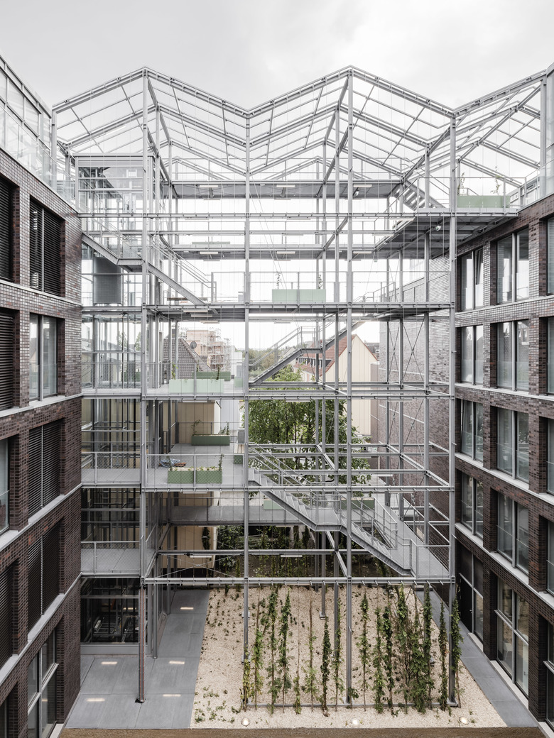Das Bürogebäude im Zentrum von Oberhausen führt die vielfältigen Funktionen eines öffentlichen Verwaltungsgebäudes und eines Dachgartens in neuartiger Weise zusammen und integriert dabei Merkmale beider Typologien. Aus dem Spannungsverhältnis von Körperhaftigkeit des Backsteinbaus und filigraner Leichtigkeit des Dachgewächshauses resultiert die neue Identität des stadträumlich wichtigen Ortes am Altmarkt.