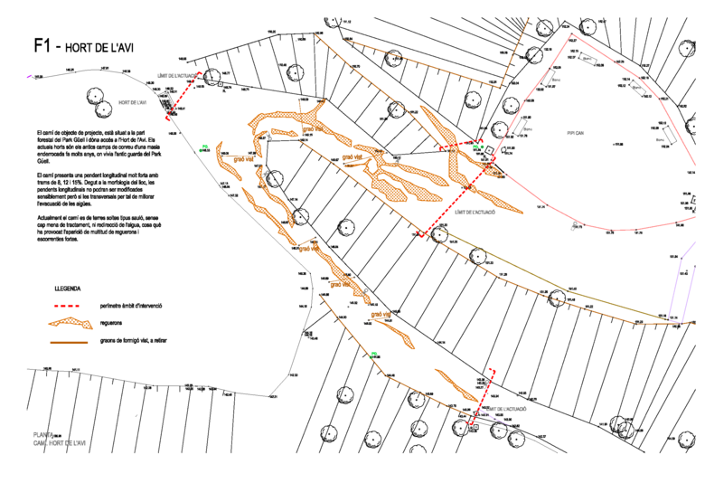 Estudio de necesidades y proyecto ejecutivo de mejora de drenaje, pavimentos y jardinería del camino de la Pressió, el Hort de l’Avi y la zona de la Font de Sant Salvador del Park Güell.