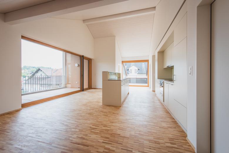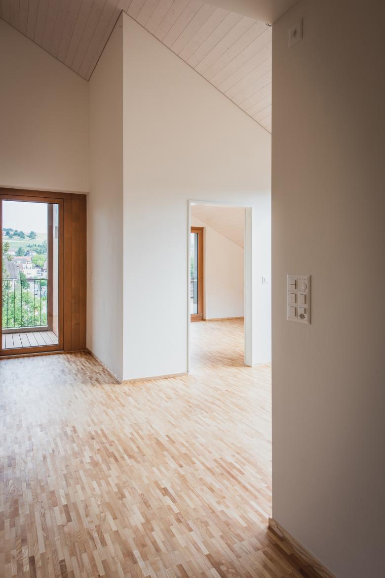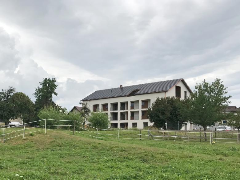 Die beiden Gebäudegruppen der bestehenden und neu geplanten Gebäude sind von Obstwiesen und Weiden umgeben. Lauben und Balkone aus Holz ergänzen die massiven Volumen. Zusammen mit den typischen Elementen der umliegenden Bauernlandschaft, welche auch die unmittelbare Nachbarschaft der Häuser prägen, entsteht ein aus der Umgebung entwickelter unverwechselbarer Ort. Die Stimmung dieses Ortes schafft für viele Bewohner ein ihnen vertrautes Umfeld.