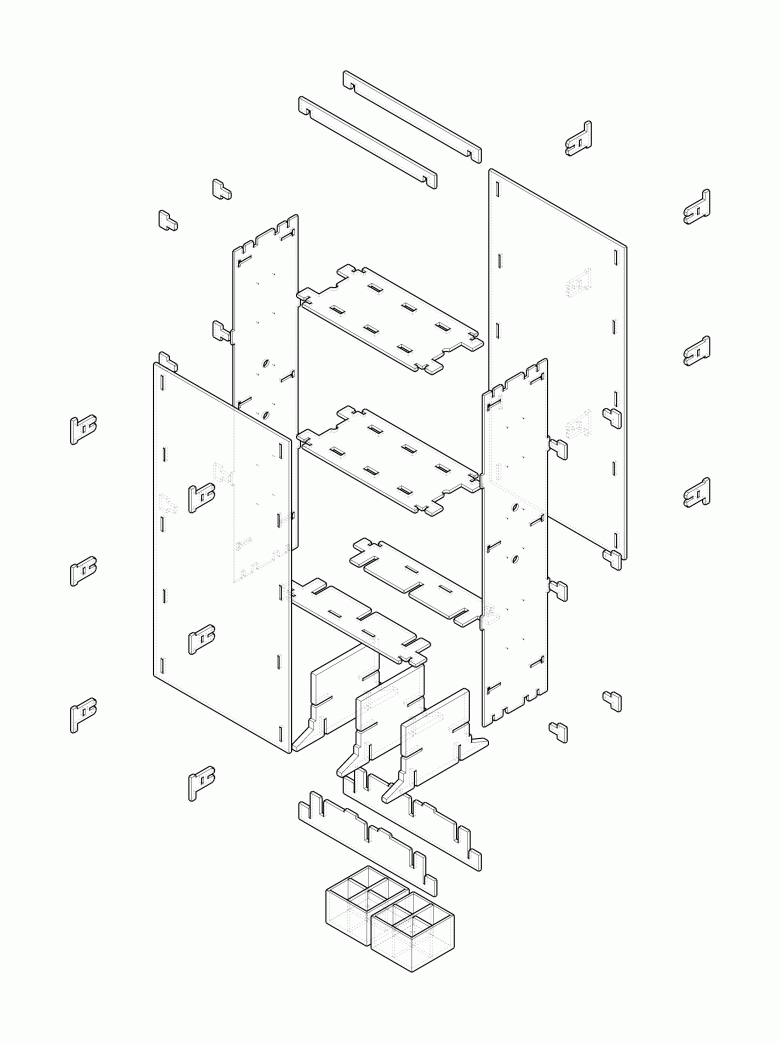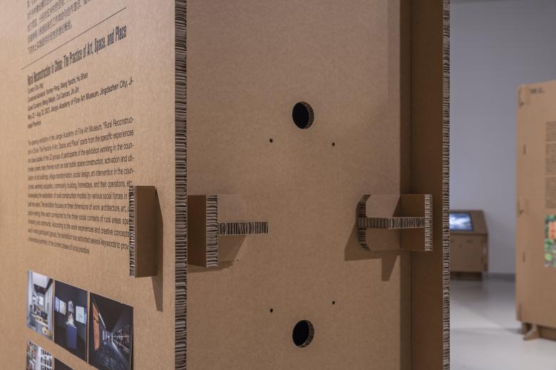 Using cardboards to create an exhibition space, the project tries to avoid construction waste during temporary exhibition program. Highly recyclable corrugated cardboards are assembled with mortise and tenon structures to form walls and stands for the exhibition. Environmentally speaking, it satisfies the requirements of "reduce, reuse and recycle", and the construction of the exhibition space itself has become one part of the exhibits.