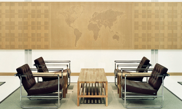 Der Klang stand im Mittelpunkt des MACH Konzepts. Die Akustik sollte eine milde Atmosphäre schaffen, wo sich selbst erregte Stimmen zu einem höflichen Summen wandeln. Hölzerne Wandpanele mit einem Schweizerkreuzmuster erfüllten diese Aufgabe. Neben ihrer dekorativen Wirkung verliehen sie dem Ticket Schalter die ruhige Atmosphäre einer gehobenen Bibliothek. Sie sind ausserdem ein gutes Beispiel des MACH Konzepts ‚Design auf den zweiten Blick‘.