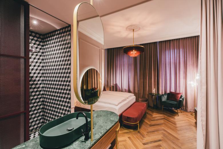 In Vienna's 6th district, in Esterhàzygasse, the former Hotel Fürst Metternich became "Die Josefine". The renovation of the Gründerzeit building was realized according to plans by architect Daniel Hora of .MEGATABS. For the interior in Art Deco style, the architects used materials such as velvet, brass and green marble.
